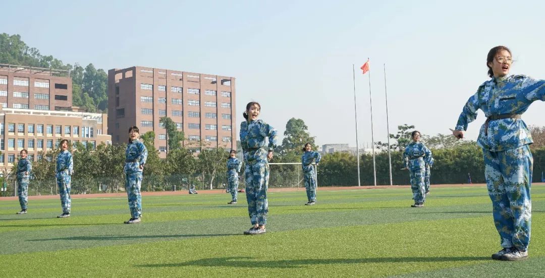 双臂摆动整齐划一,立正军姿井然有序,