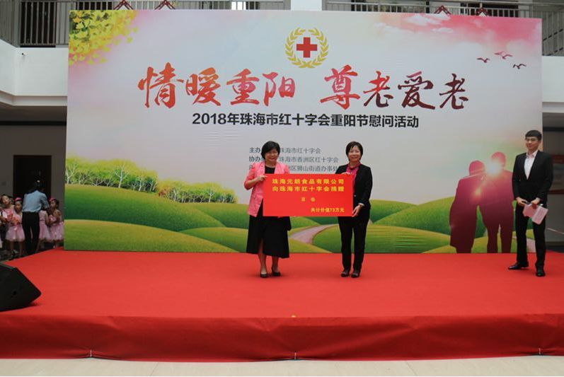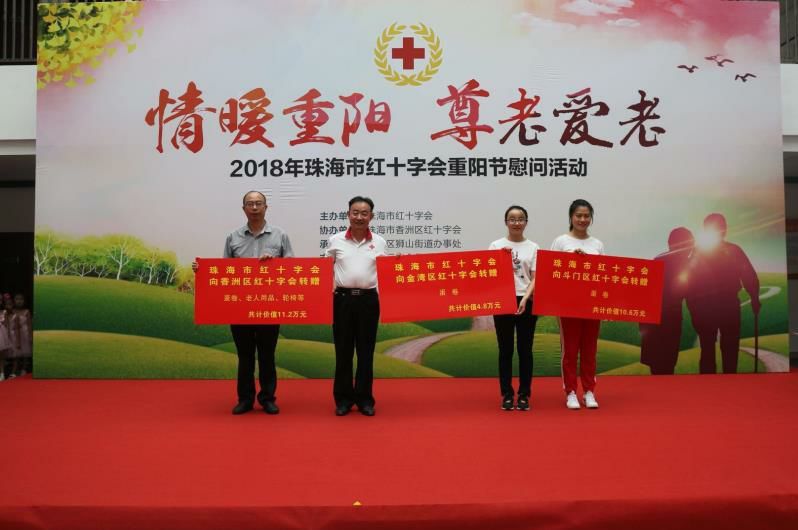 本次慰问活动得到了珠海元朗食品有限公司、日医(珠海)健康服务有限公司、金杏堂医药连锁有限公司的大力支持,分别为这次慰问活动提供了食品、药品、老年人护理用品和服务卡等,用于慰问狮山辖区长者。