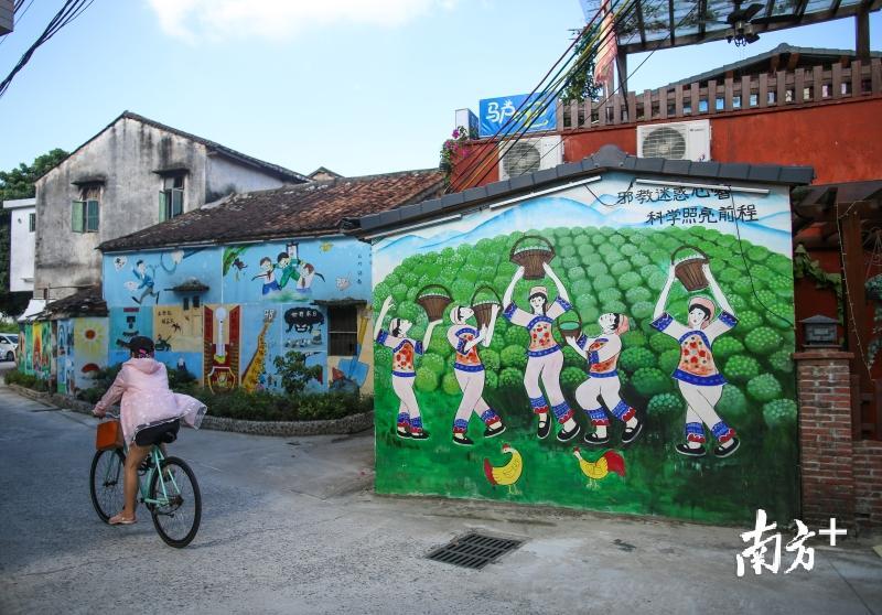 走进博罗县罗阳镇观背村,记者一行立刻被民居外墙上五颜六色的壁画吸引住了。