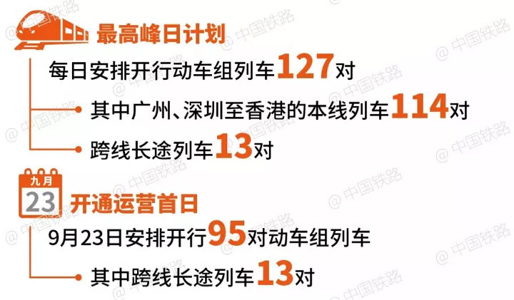 广深港高铁香港段开通初期,将根据客流情况按日常图、周末图、高峰图安排动车组列车开行。