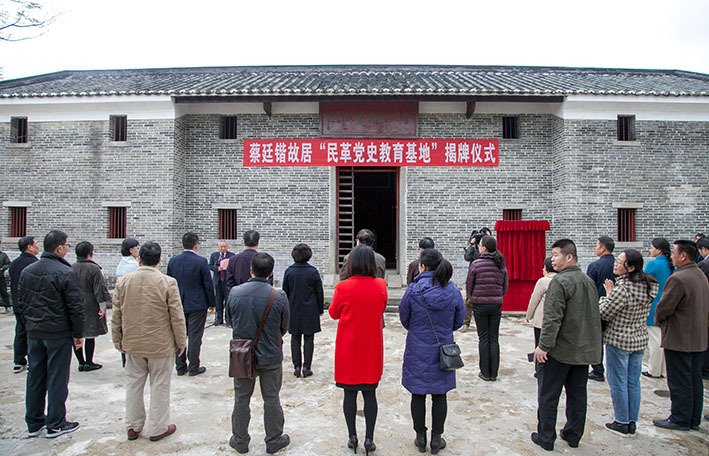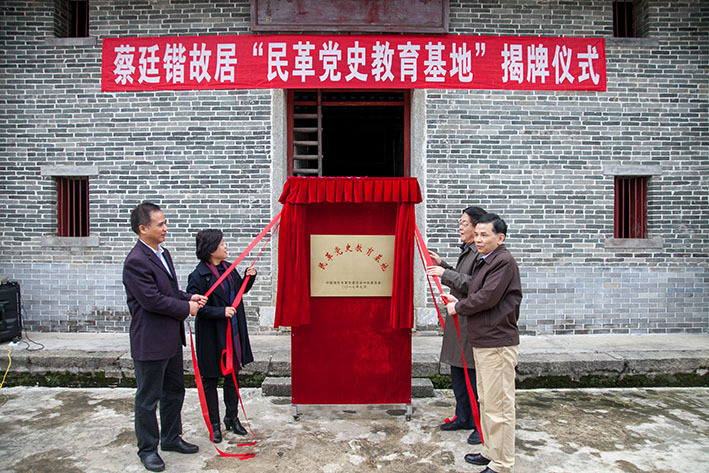 今年7月,民革中央下发通知,公布我市蔡廷锴故居命名为中国国民党革命委员会党史教育基地的决定,11月21日,举行“民革党史教育基地”揭牌仪式,全国人大常委会委员、外事委员会副主任委员、民革中央副主席(副部级)修福金,民革广东省委会副主委、广州市委会主委、广州市政协副主席于欣伟,云浮市委常委、统战部长肖向荣,我市政协主席陈定三为蔡廷锴故居“民革党史教育基地”揭牌。民革中央宣传部及民革广东省委会宣传处有关负责人、民革云浮市基层委员会主委,我市领导梁玉莉、欧阳明、沈灿明等有关人员参加揭牌仪式,仪式由市政协副主席沈灿明主持。