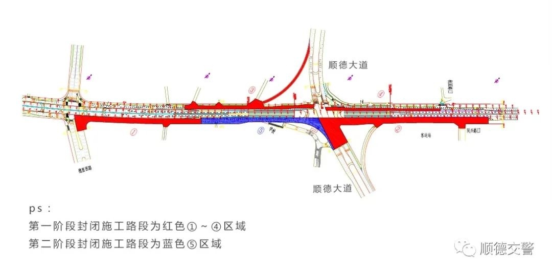 顺德大道至延年路跨线桥入口路段(杏坛往大良方向)辅道进行全封闭施工;