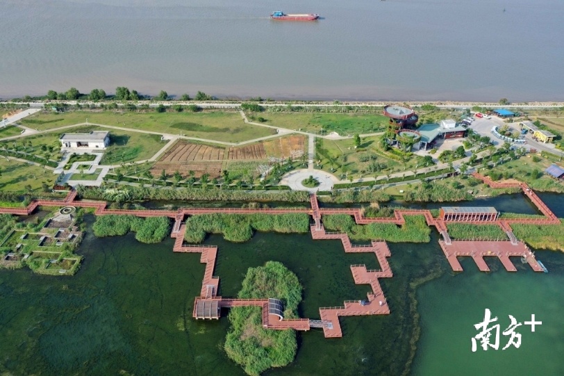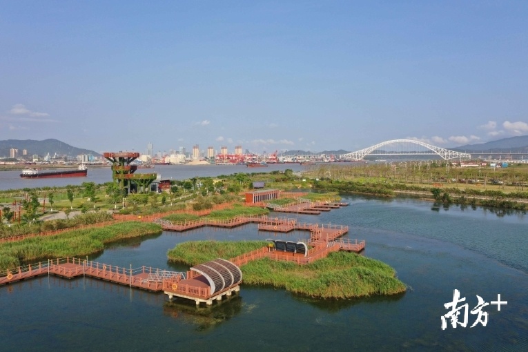 横琴新区二井湾湿地公园一期内,水道如巷,柳绿拂水,鱼翔浅底。鸟掠芳洲,勾勒出了一幅诗意美景。二期未来为游览核心区域,将打造以海岸生态修复、湿地生态展示、生态旅游与科普教育为核心的景观带。