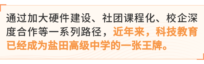 今年高考,以680分优异成绩考上北京大学的盐高学子易婧就是科创类社团——创意编程社的成员。今年9月份,深圳市教育局公布了20所学校为“深圳市中学生科技创新教育特色学校”创建单位,盐田高级中学榜上有名,成为该校科技创新教育实力和突出成果的有力证明。