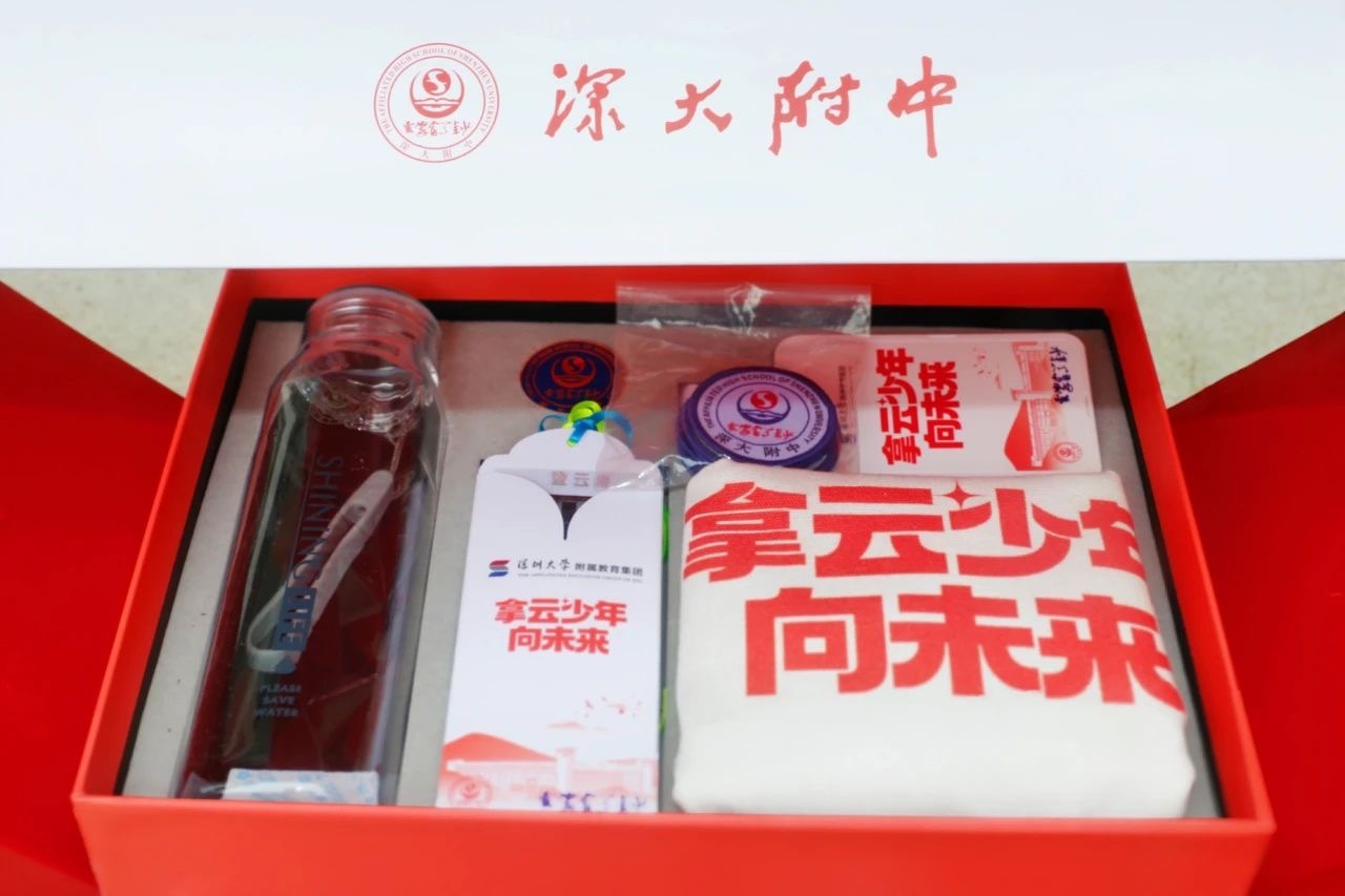 礼盒的主题为“拿云少年向未来”,其与深大附中校训“少年心事当拿云”形成呼应,表达出对新生积极向上的期望,期望新生们在追求未来梦想过程中勇敢担当、勇往直前。