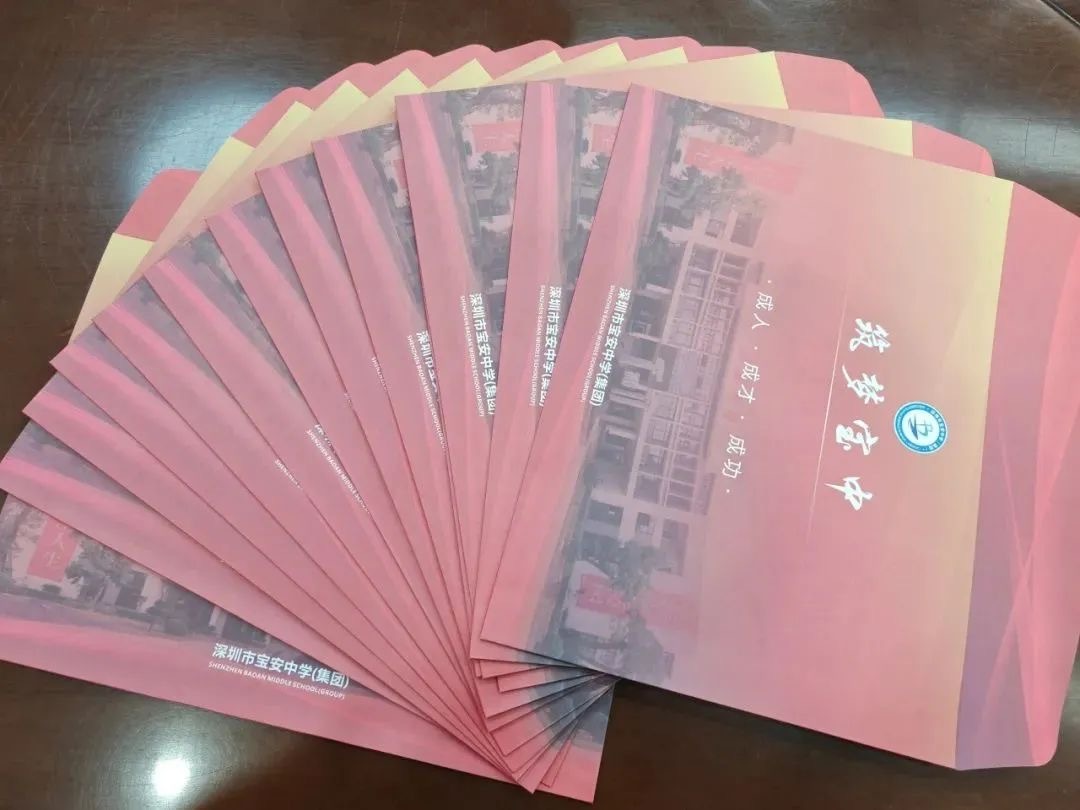 宝安中学今年录取通知书装于“筑梦宝中”文件袋之中,其中封面“成人、成才、成功”六字校训凸显出宝中四十年来发展底色。