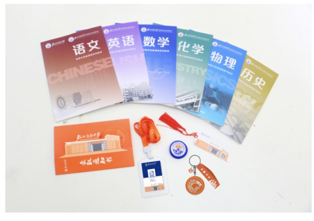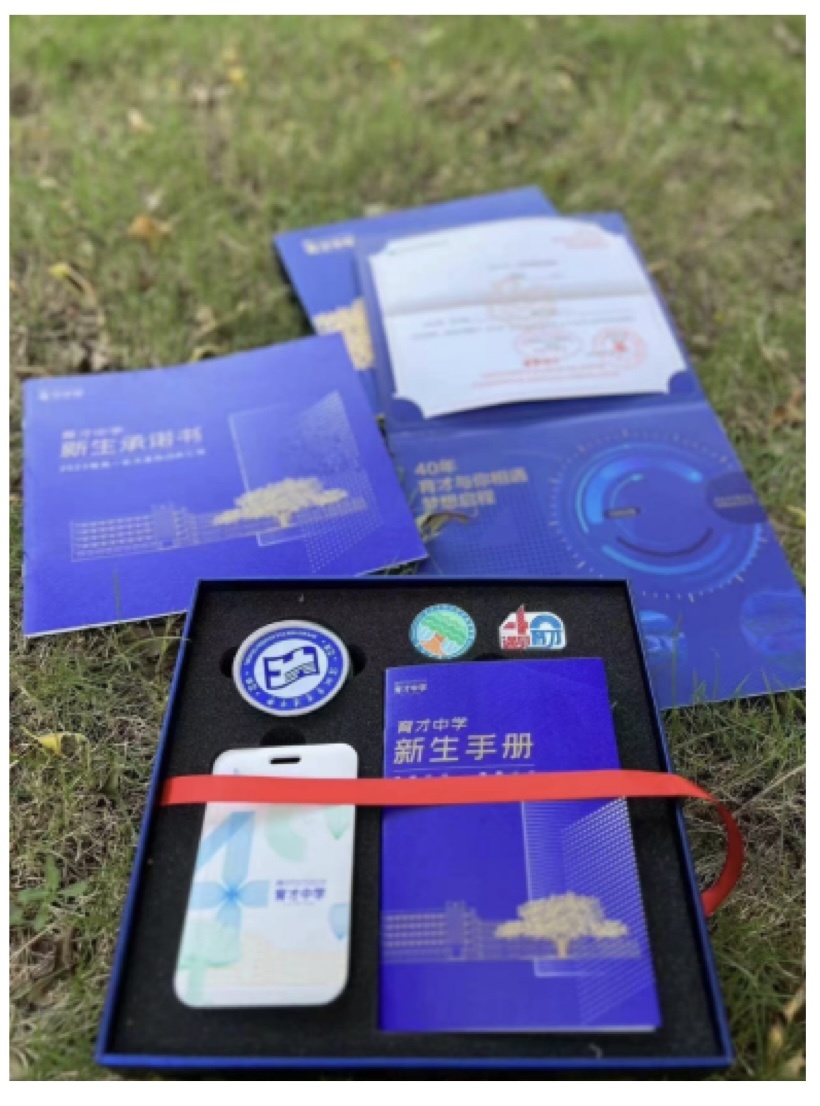除此之外,学校还为新生准备的大礼包还包含初高中衔接教材、校徽、个性瓦当、定制书签、一卡通卡套,可谓是一应俱全。