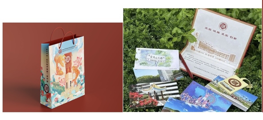礼包中特别准备一套印有深中校园美景的明信片,每位新生还会收到一张由深中学长亲笔写上“祝福与期待”的专属明信片。此外,还包括塞“校园通”的卡套,橘、浅绿、浅蓝、浅灰四款不同颜色,封面印着校园各个重要“角落”的笔记本等。