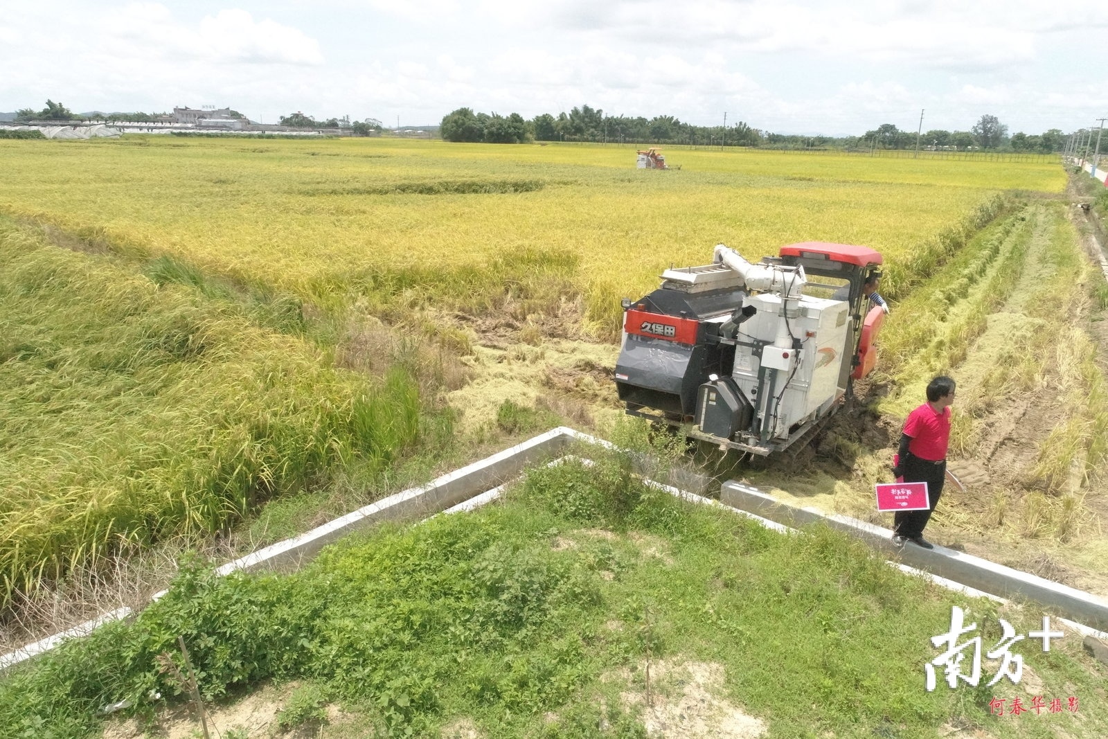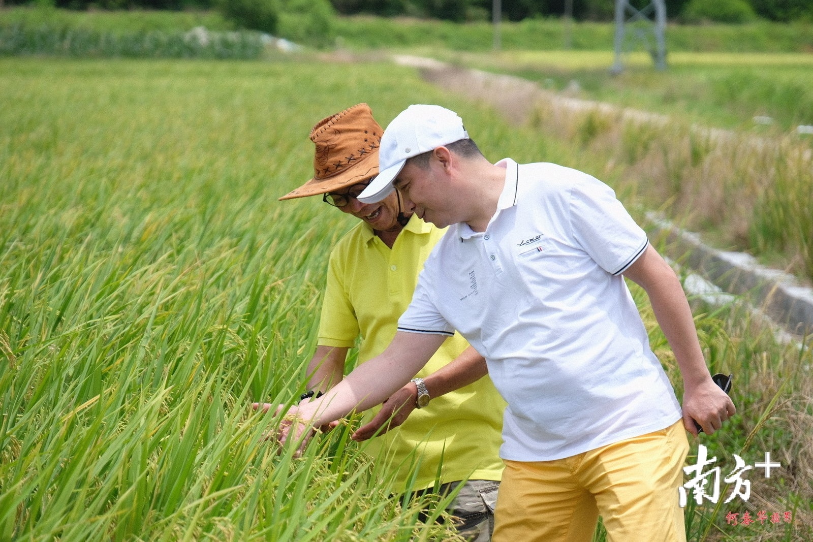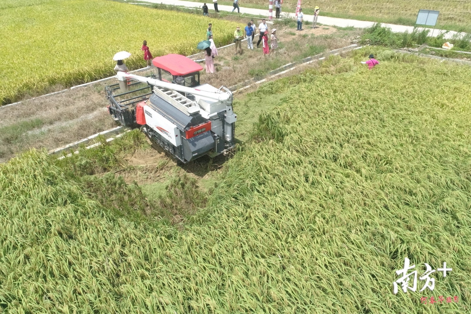 7月,稻禾成熟。近日,牛江富硒小镇丝苗米产业园种植基地举行“恩之禾”早造开镰庆祝活动。基地相关负责人潘志华介绍,该基地今年早造水稻种植面积近1890亩,经测算,亩产量可达1080斤。