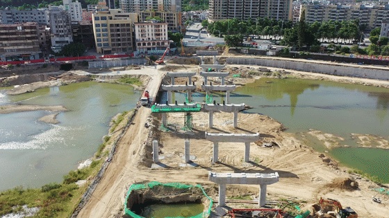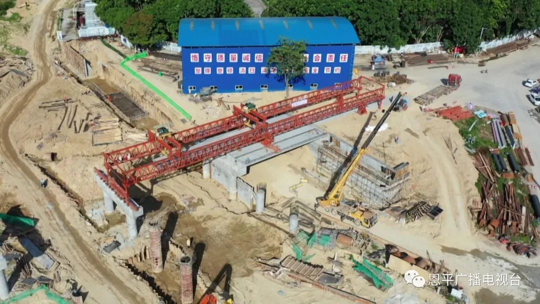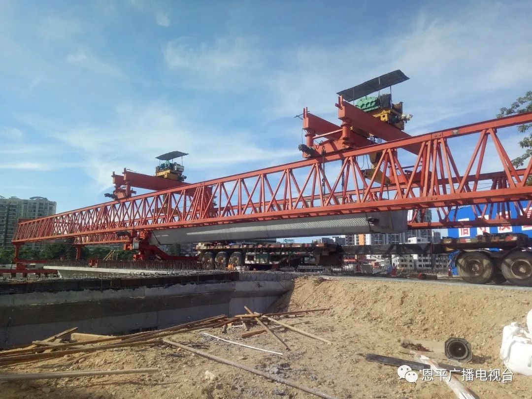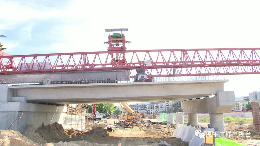 飞马大桥改建工程现场负责人王坦:“飞马大桥的梁板安装目前已经完成第一跨架装工作,已经安装5片梁,计划在9月上旬实现左幅贯通。”