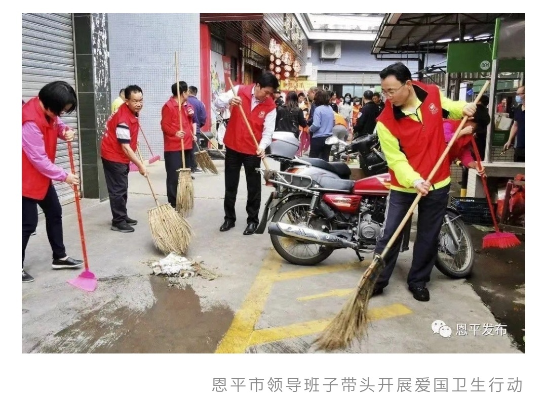 恩平市加大力度,整治城区、乡镇环境卫生,着力解决城市卫生死角、建筑淤泥乱堆放、商户占道经营、城市“牛皮癣”等一系列影响市容环境的“脏、乱、差”问题,开展爱国卫生大行动,集中力量清除卫生死角、填平坑洼积水、加强建筑工地管理,督促农贸市场全面落实“三个一”环境卫生整治制度。