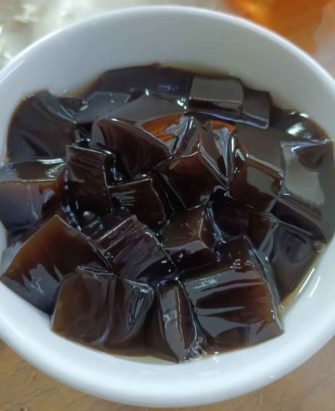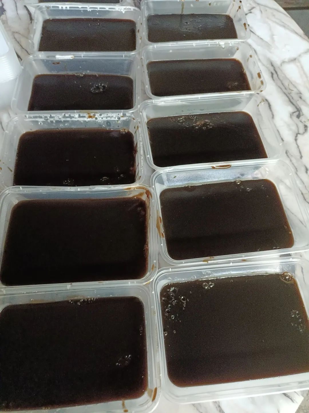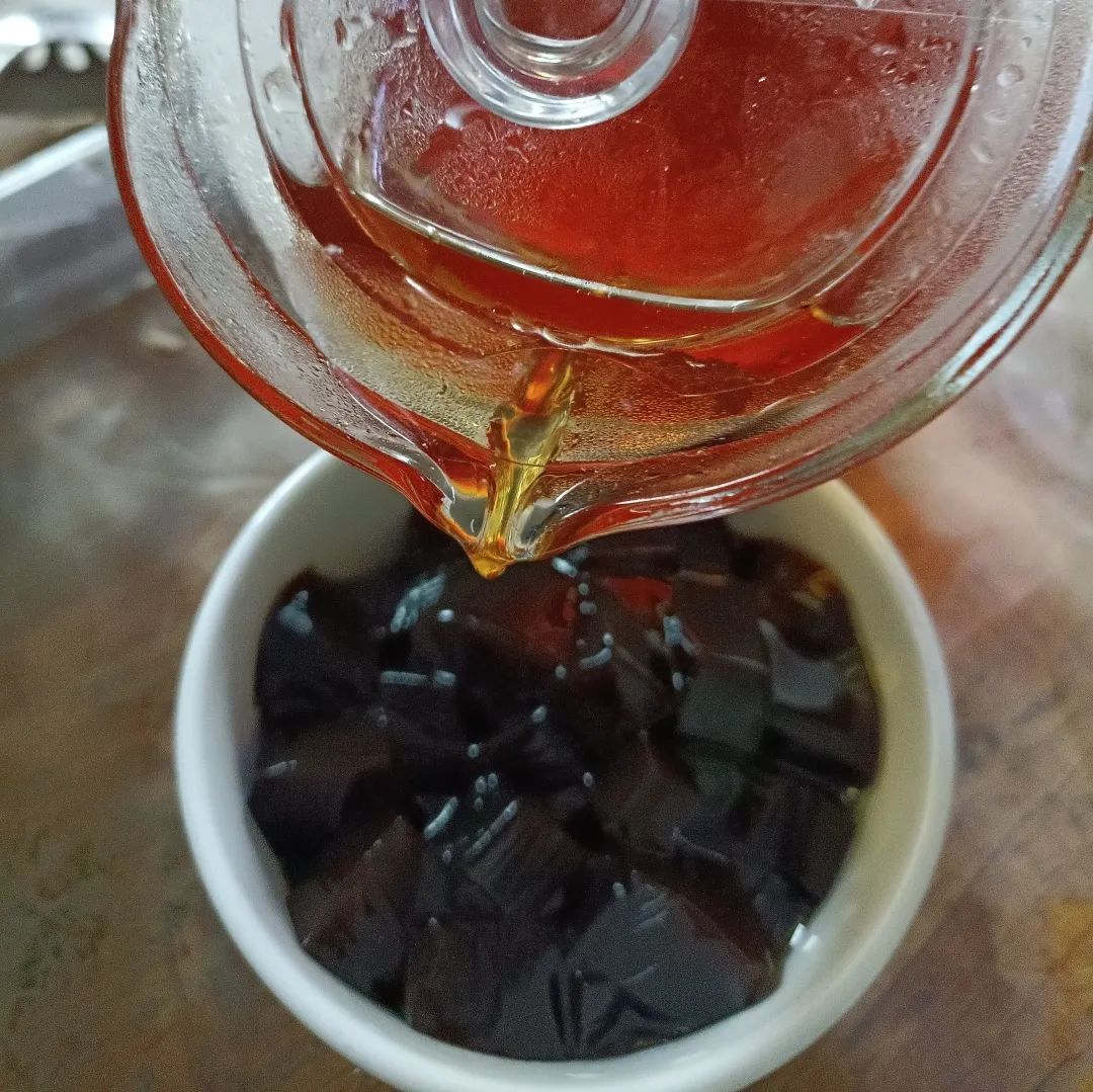 凉粉的制作工序颇为繁琐,要经过煲草、过滤、隔渣、熬煮、加入淀粉、煮沸等步骤,需要全程专心致志地制作并严格把关,稍不留神就会导致成品不理想。