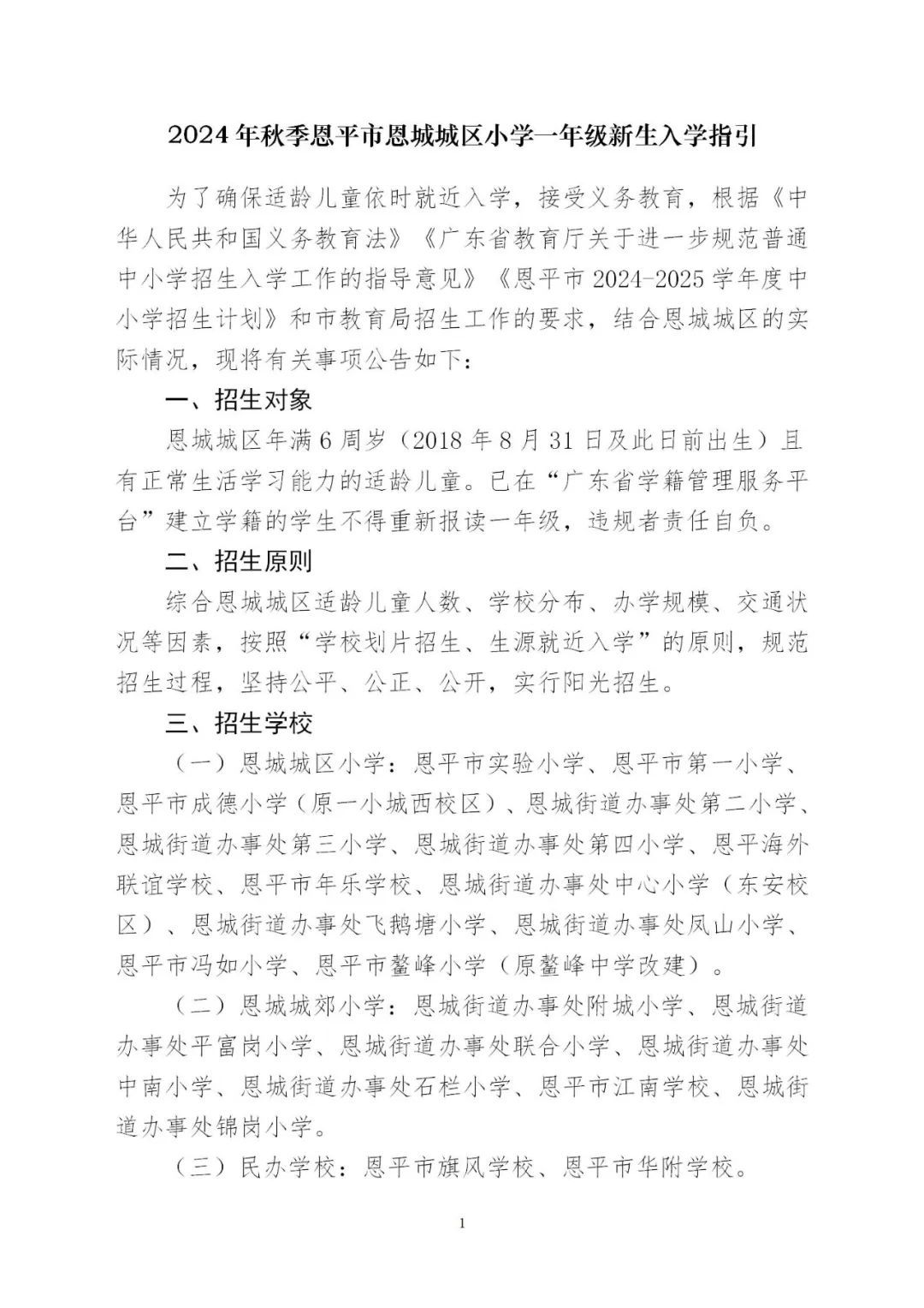 招生范围公布!恩平恩城城区小学一年级新生入学指引来了