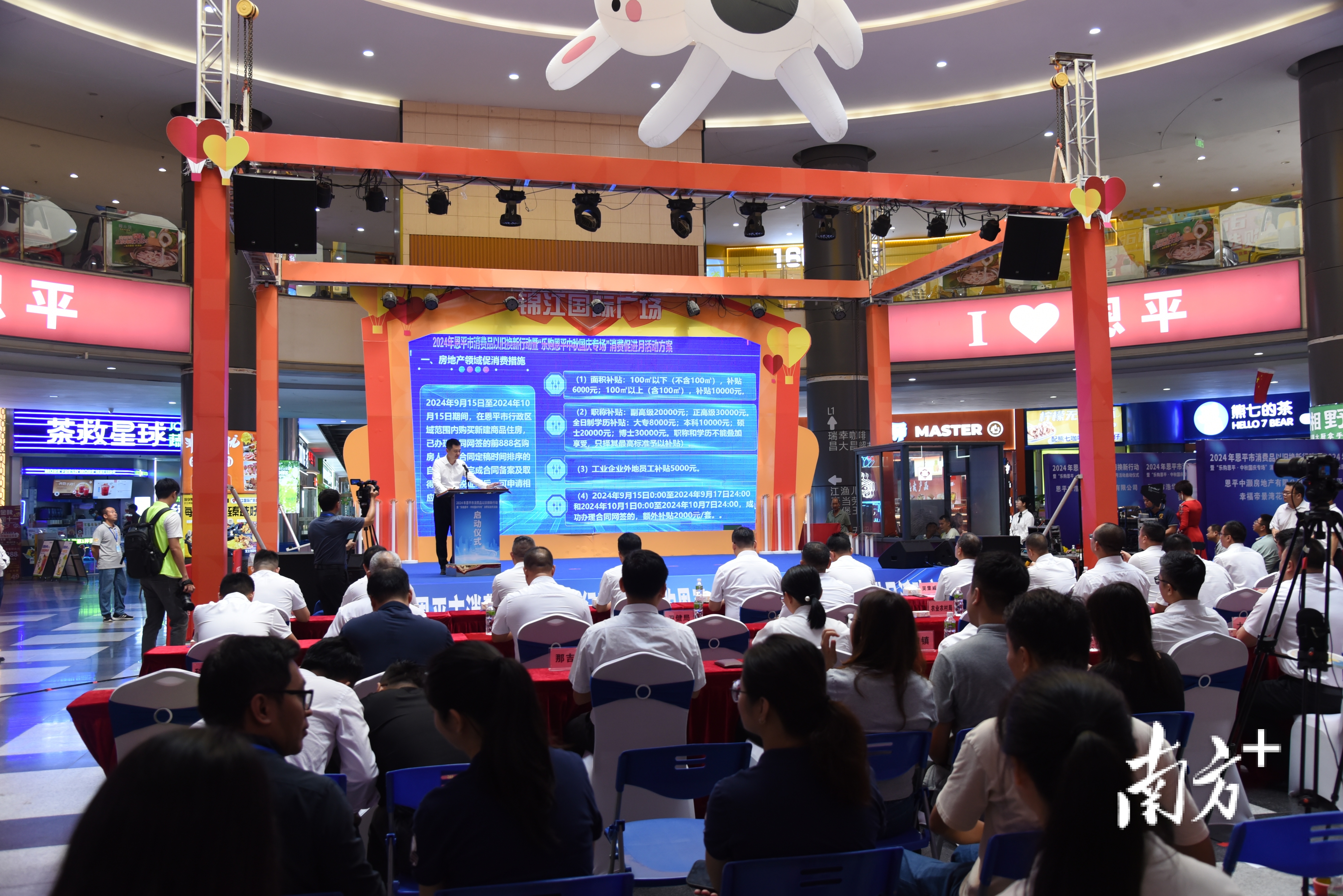 9月15日, 在中秋、国庆双节即将到来之际,2024年恩平市消费品以旧换新行动暨“乐购恩平·中秋国庆专场”消费促进月活动启动仪式在锦江国际广场举行。恩平发布购房补贴、汽车以旧换新优惠、消费折扣等一系列福利,购房最高补贴4.7万元,新一轮“消费盛宴”开启。
