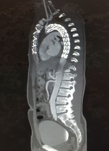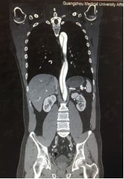 剧烈的疼痛让王先生有种说不出的恐惧感,他立即到当地医院紧急就诊。经过对症处理之后却不见效果,随后急转至广州医科大学附属第一医院急诊科。经过紧急胸腹部主动脉全程CT检查之后,诊断为主动脉夹层,随时可能破裂大出血,立即通过急诊绿色通道入住心血管内科。