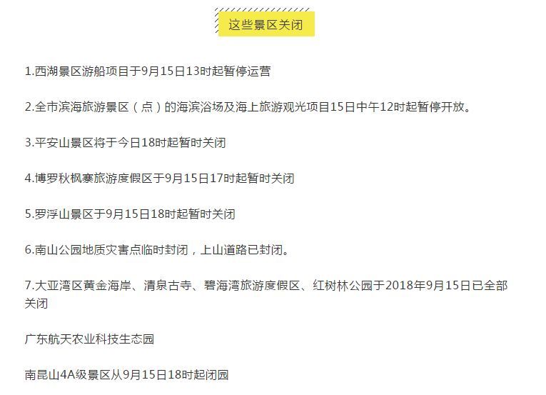 红花湖景区也于9月15日24时起采取封园措施,暂停对外开放,待台风预警信号解除,确保消除安全隐患后对外开放。惠阳区图书馆(含归善书房)将于9月16日(周日)闭馆。此外,还有下图这些景区也暂停对外开放!