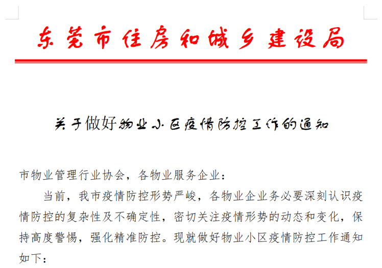 近日,东莞开展全市全民核酸检测,为确保社区安全,东莞市住房和城乡建设局发布《关于做好物业小区疫情防控工作的通知》(以下简称:《通知》),从多个方面要求物业企业保持警惕,强化精准防控。