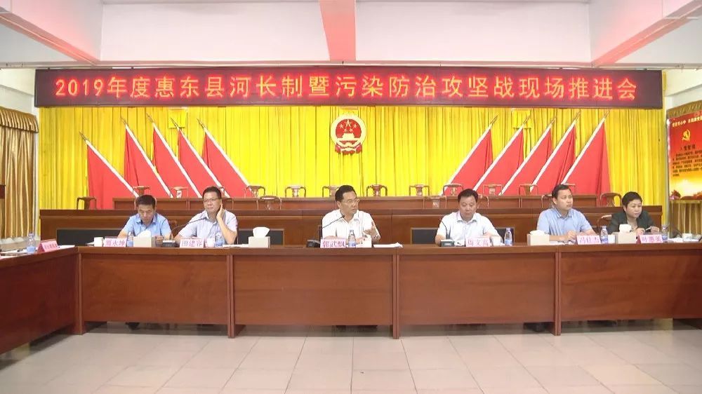会上,县委书记郭武飘强调,各级各有关部门要充分认清形势,切实提高政治站位,采取强有力措施,坚决扭转当前不良局面。要严格按照我县总指挥部印发的一号令《关于开展全面攻坚劣V类地表水国省市考断面行动的命令》,盯紧目标任务,全力攻坚,全面突破,以清单式扎实推进工作。要压紧压实责任,全面对标今年上级下达的各项考核任务,狠抓工作落实,确保全面按时保质完成。要严格落实河长制,加强指导监督,统筹推进河涌综合治理和全县生态环境保护工作。要加大督查考核力度,注重实效,对污染防治攻坚不作为的领导干部,将严肃追责问责,营造令行禁止的高压氛围。要举全县之力,以铁的手腕坚决打赢污染防治攻坚战,力争年底前全面消除劣Ⅴ类水体,以更大的担当作为,为惠州建设国内一流城市和惠东重返一流行列作出积极贡献。