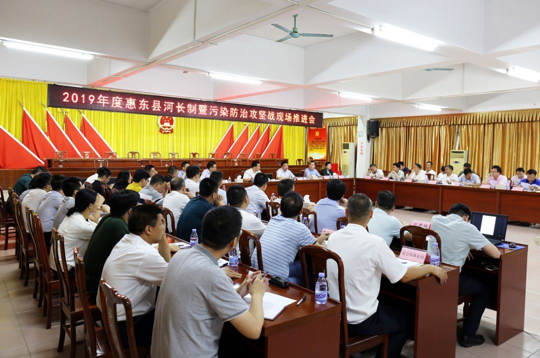 5月13日,惠东县召开2019年河长制暨污染防治攻坚战现场推进会,市生态环境局局长周文高,县领导郭武飘、田建容、冯仕杰、周永坤、叶惠英,以及各镇(街道、度假区)和县直有关部门主要负责人等参加了会议。