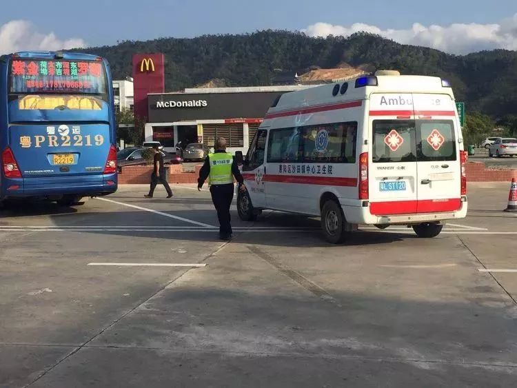为确保万无一失,分控中心按照联动联勤工作机制,马上协调就近的沙田镇中心卫生院派救护车到服务区对该乘客进行救治。约10分钟后,救护车赶至现场,民警快速引导救护车停放好,并带医护人员到大客车上查看乘客情况,随行医生随即问询乘客身体情况。20分钟后,该乘客感觉身体不适有所缓解,不愿意随救护车到医院作进一步检查治疗,民警和医生对其进行劝导,但其执意要继续坐车。