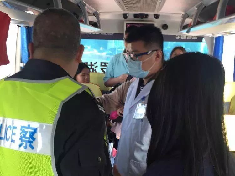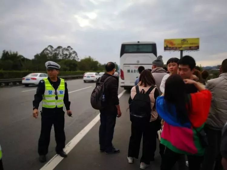 2月7日下午16时50分许,沈海高速往汕头方向沙田服务区处,一辆大客车正常进入了服务区,乘客下车看见巡逻警车后,急忙向警察招手求助。