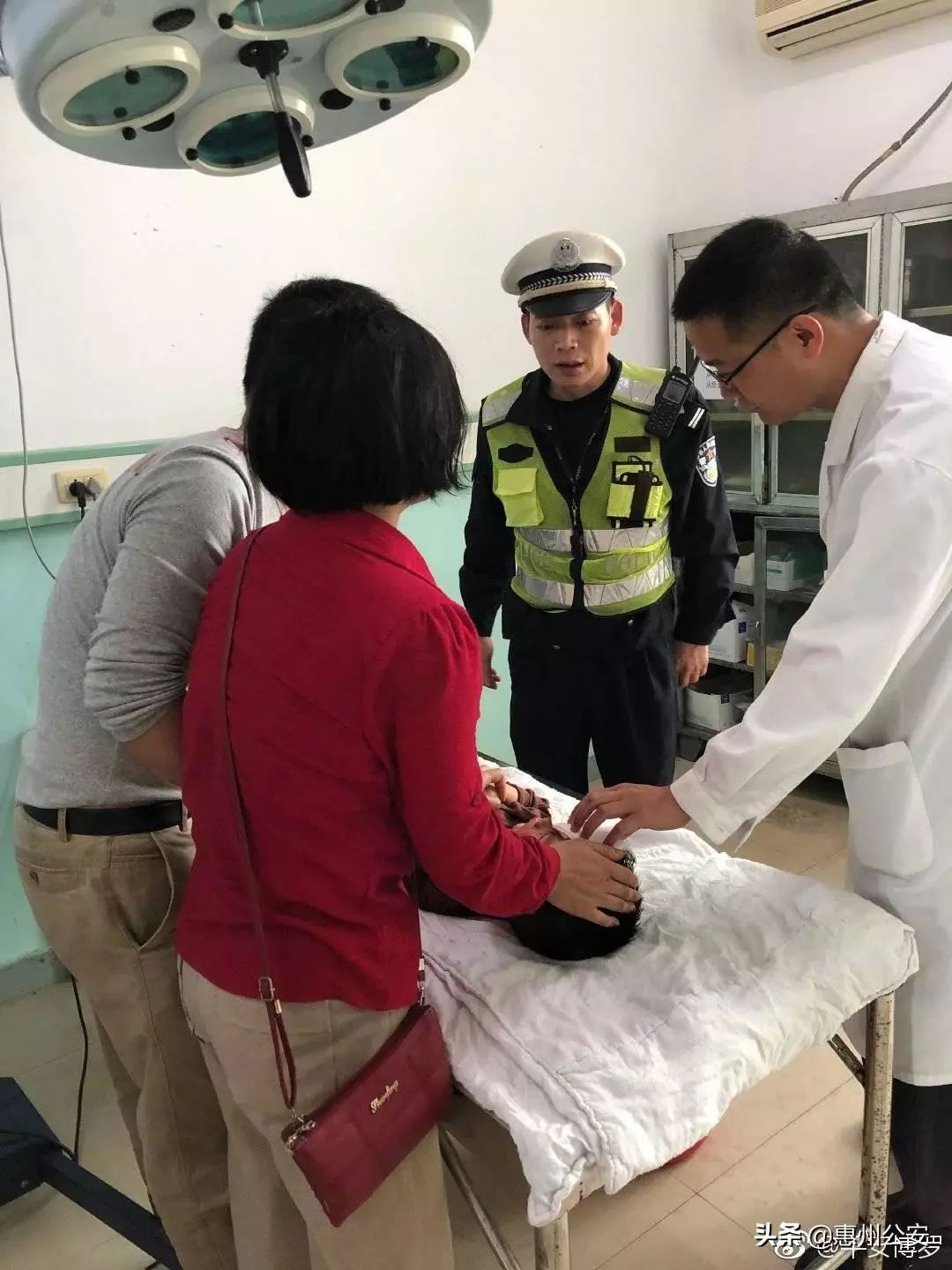 后经了解,这对夫妇是博罗公庄人,带孩子来罗浮山祈福,孩子在路上游玩打闹时出现意外,自己又没开车,情况紧急,正吓得慌乱,幸好遇到交警,及时帮忙将小孩送到医院救治。