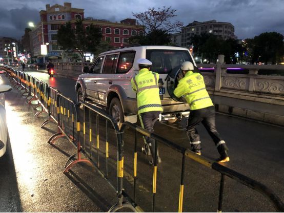 晚高峰时段,平山中队执勤人员在实验小学周边道路开展站岗工作时,发现一辆故障车停在路中,阻碍路面交通,便立即派员将故障车推至安全区域停靠,消除了安全隐患,防止了校园周边路段交通事故的发生。