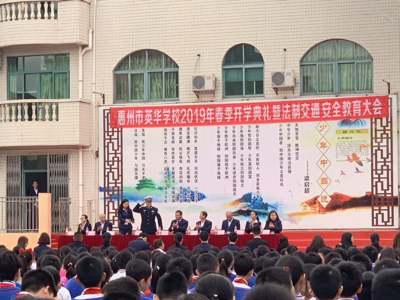 陈江中队民警和惠环中队民警带着协警参加了学校升旗仪式,并为学生分析了辖区典型交通事故案例,提醒学生自觉遵守交通法律法规,注意交通安全。