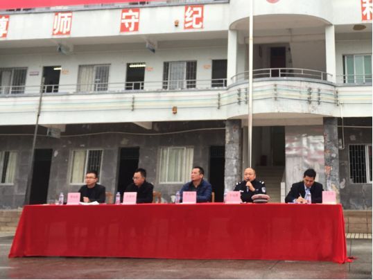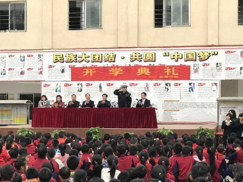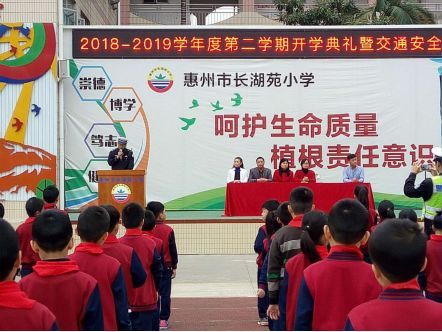 大湖溪中队民警到龙湖学校参加开学典礼,为广大师生讲交通安全课。