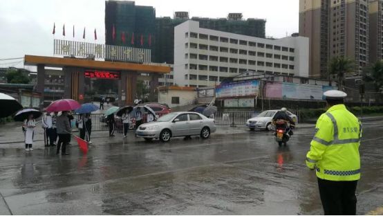 惠东交警站好“护学岗”,撑起“平安伞”,为师生往返学校保驾护航