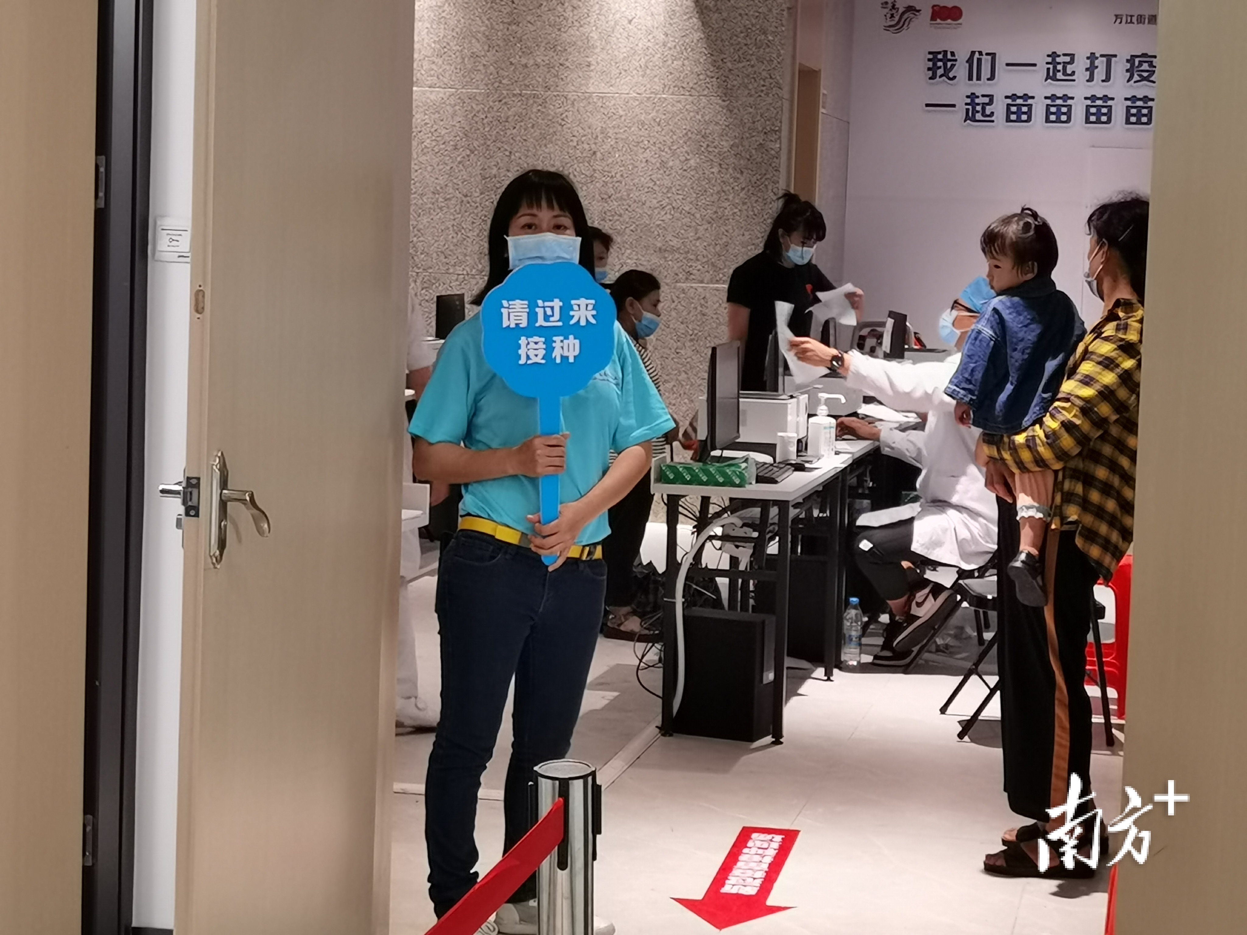 “谦仔,妈妈要去打疫苗那边了,你乖乖地和奶奶在家玩。”5月2日上午6时许,刘广凤像往常一样早起,穿好天蓝色的志愿者服,前往位于万江政务服务中心的新冠疫苗大型临时接种点。