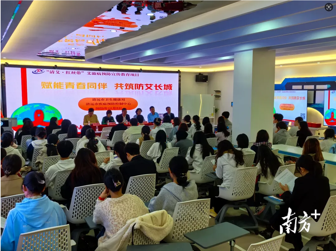 11月3日,广东财贸职业学院(清远校区)的阶梯教室内掌声此起彼伏。作为贯彻《广东省遏制与防治艾滋病行动方案(2025—2030年)》的关键举措,“赋能青春同伴,共筑防艾长城”培训班在此开班,来自省职教城(清远)10所院校的55名“清艾・红丝带”志愿服务队骨干,正式开启为期半天的“理论+实操”集训。