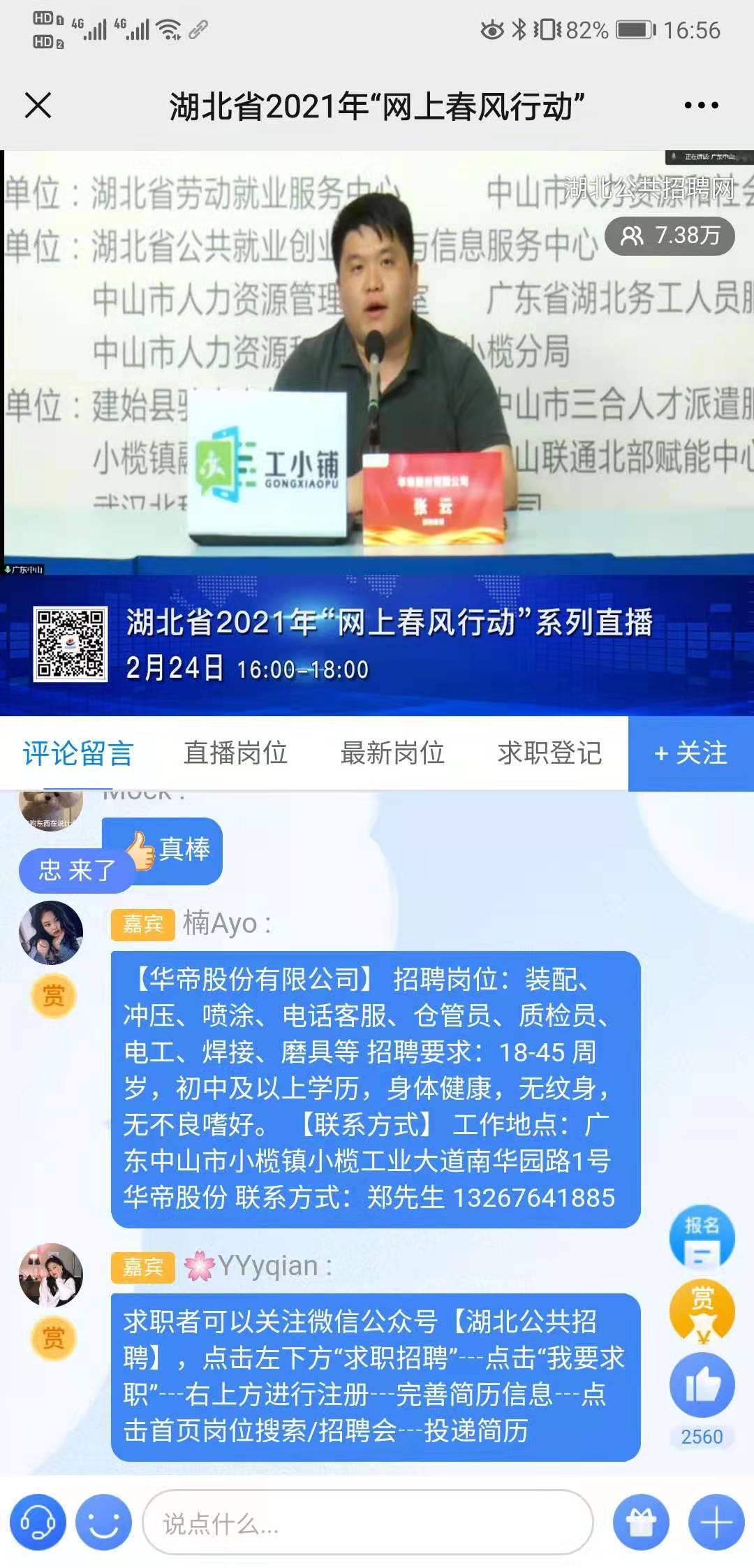 湖北省 2021 年“网上春风行动”直播带岗广东省中山市企业专场在湖北武汉启动,并在中山市小榄镇电视台全程直播。