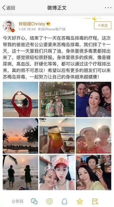 前段时间关于钟丽缇“泰国吃油排毒法”的微博