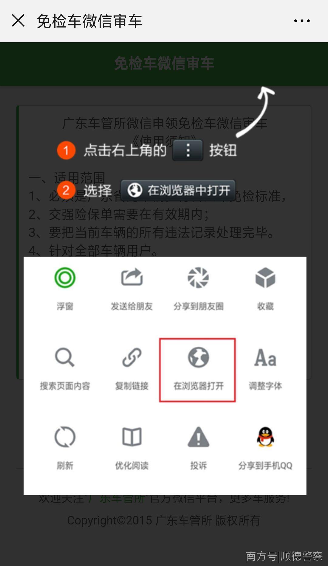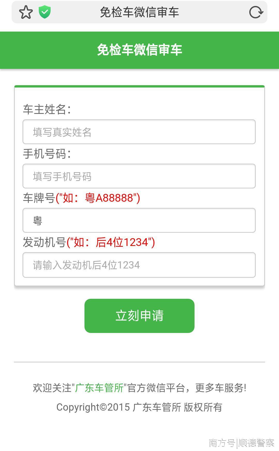 第一步:发送短信诱骗关注微信号。事主收到的诈骗短信内容为:【广东交警】王XX,您的车辆六年免检今日到期,请关注微信公众号“广东车辆核审”办理。