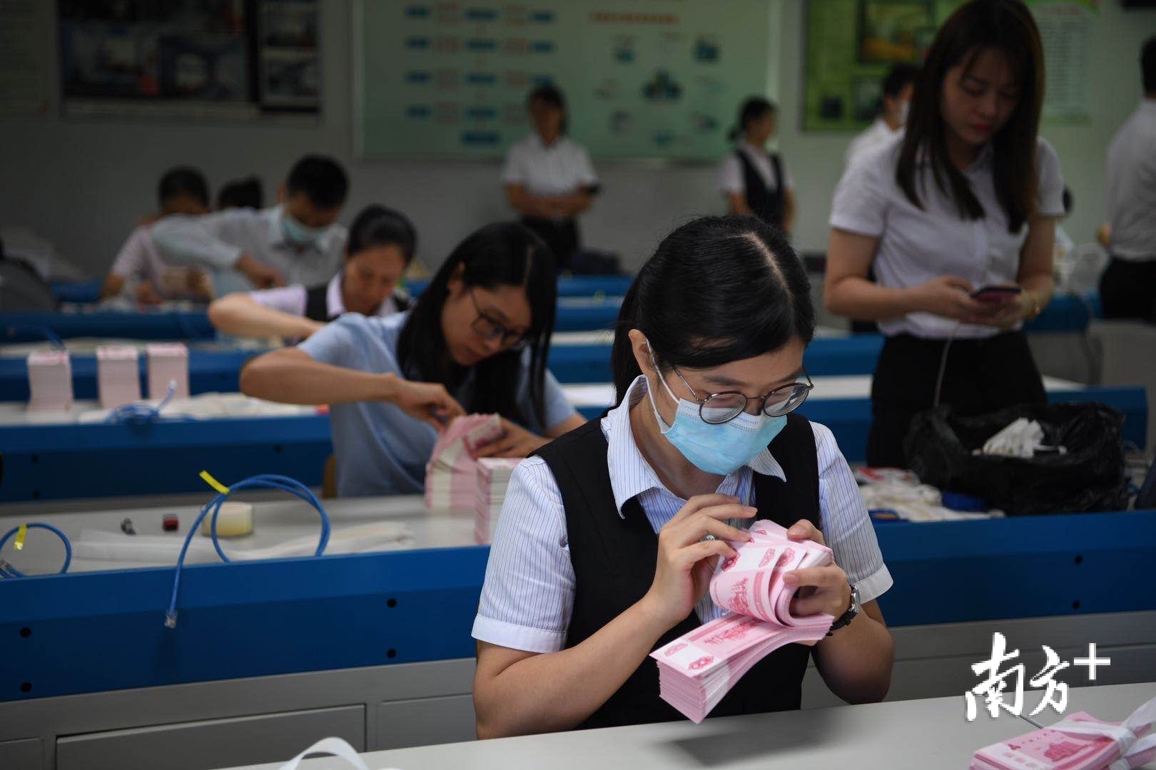 高手们灵巧的手指上下翻动,左手拿钞、右手点钞。