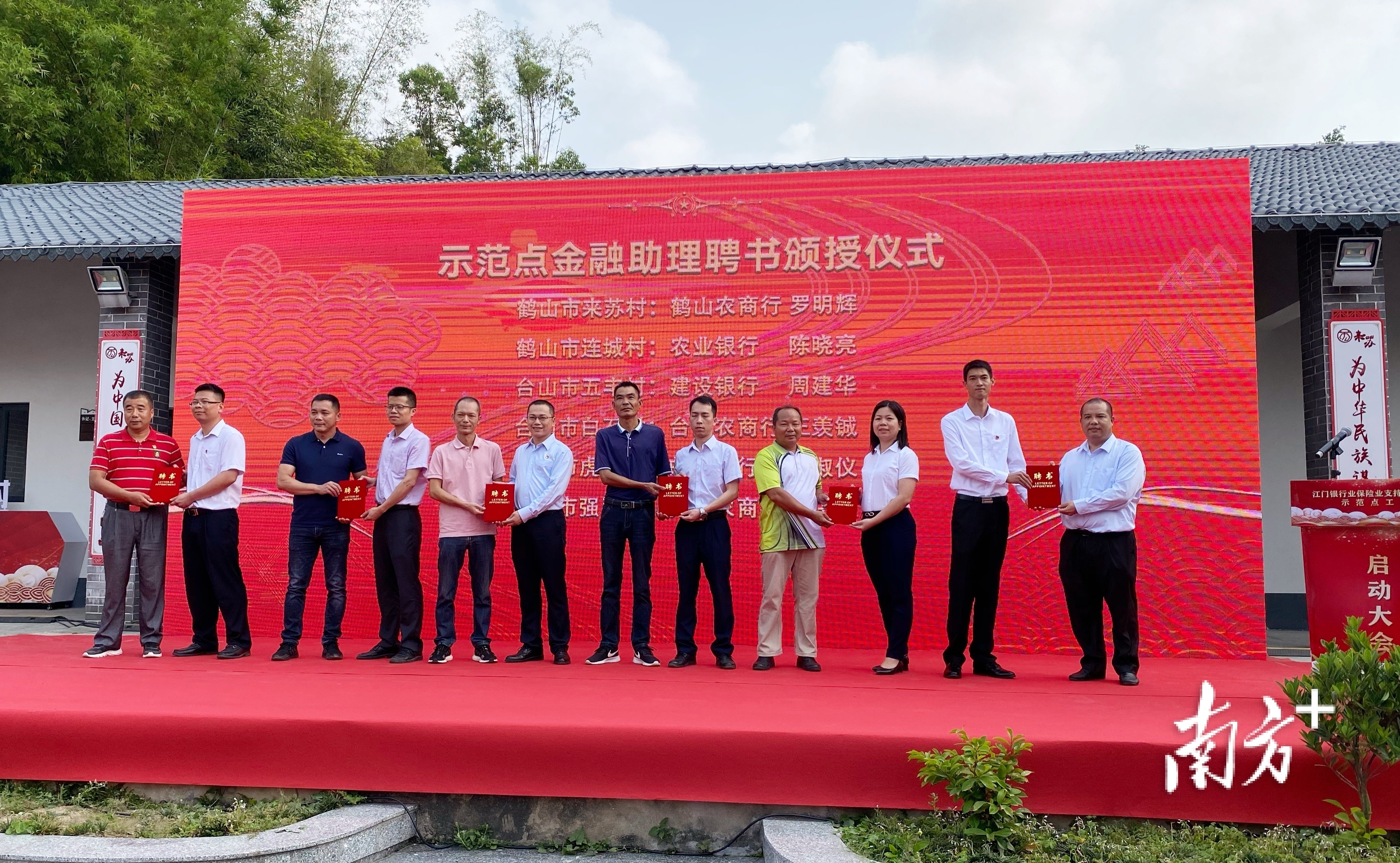 4月13日,江门银行业保险业支持乡村振兴示范点工作启动大会在鹤山市共和来苏村举办。26家参与本批示范点工作的银行保险机构与12个示范村(镇)正式结对,12名驻村(镇)金融助理分别获所在示范村(镇)代表颁发聘书。