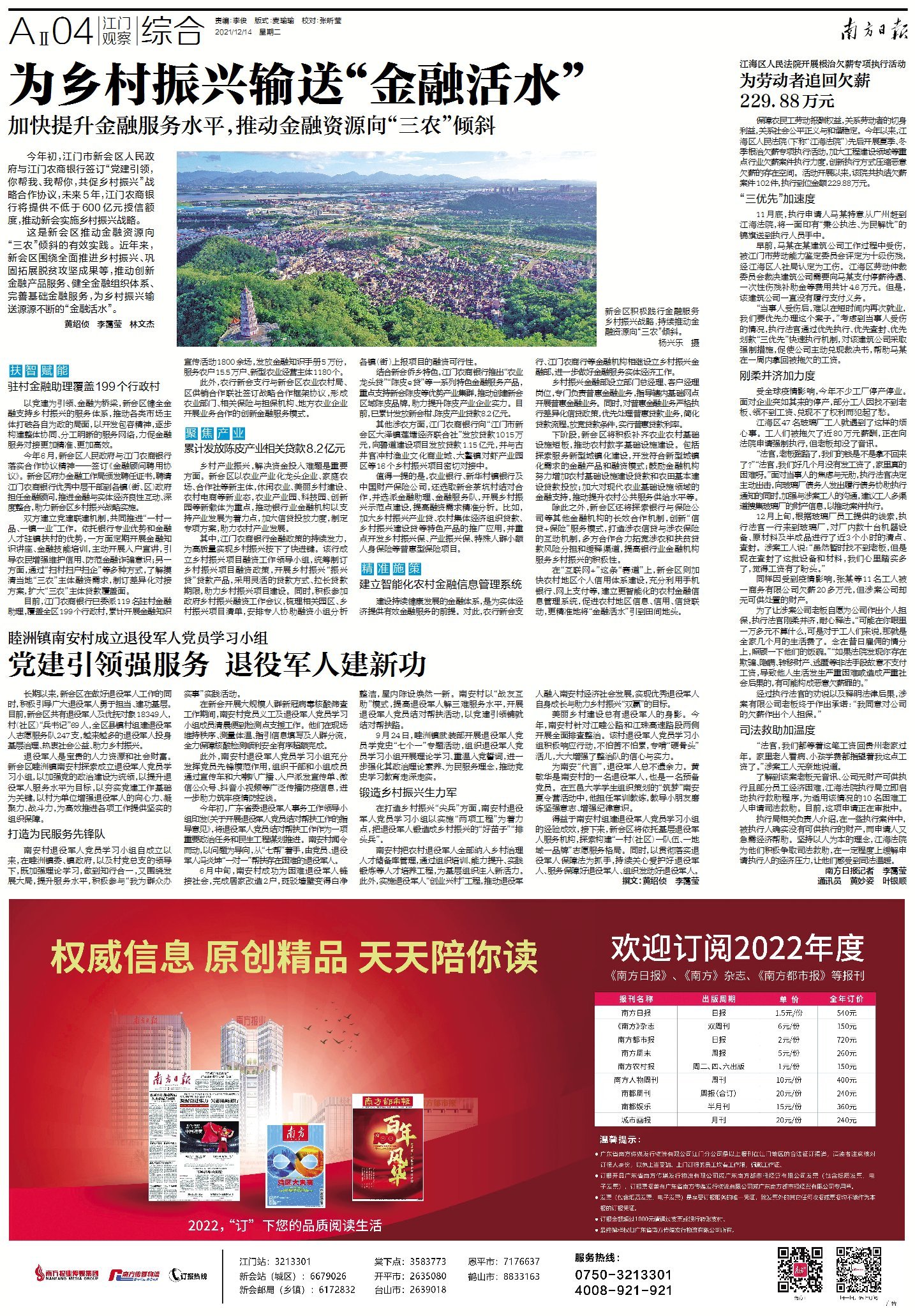 这是新会区推动金融资源向“三农”倾斜的有效实践。近年来,新会区围绕全面推进乡村振兴、巩固拓展脱贫攻坚成果等,推动创新金融产品服务、健全金融组织体系、完善基础金融服务,为乡村振兴输送源源不断的“金融活水”。