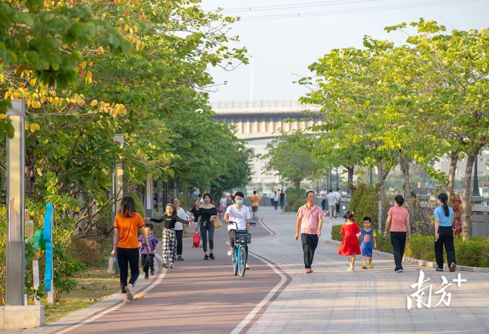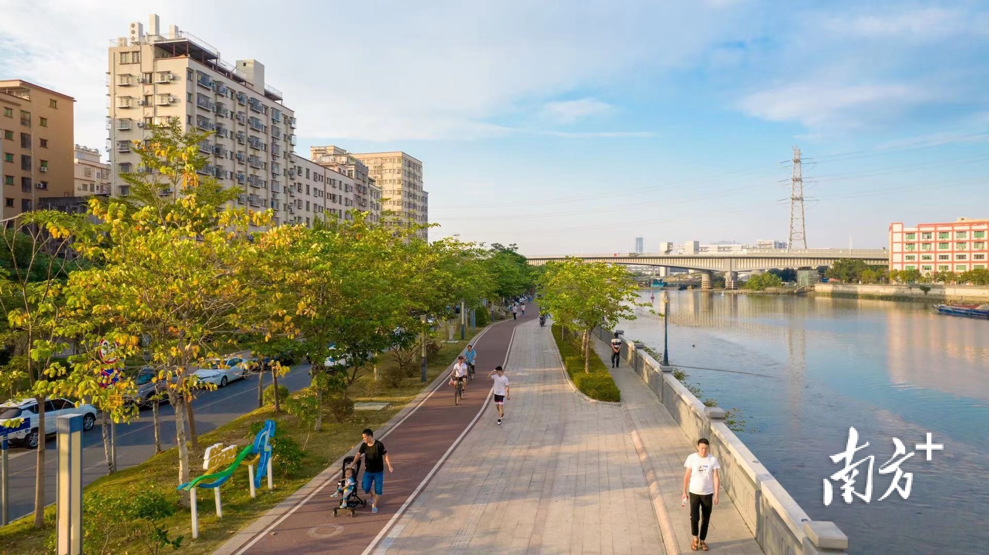 东莞着手整治茅洲河流域河道水网,打造100公里近岸休闲慢行系统,设立慢行道、跑步道、骑行道,在重要节点设立驿站和亲水平台,满足市民亲水、休闲和健身需求。沿岸还建起了景观带,群众茶余饭后多了一个休闲纳凉、遛娃散步的好去处。