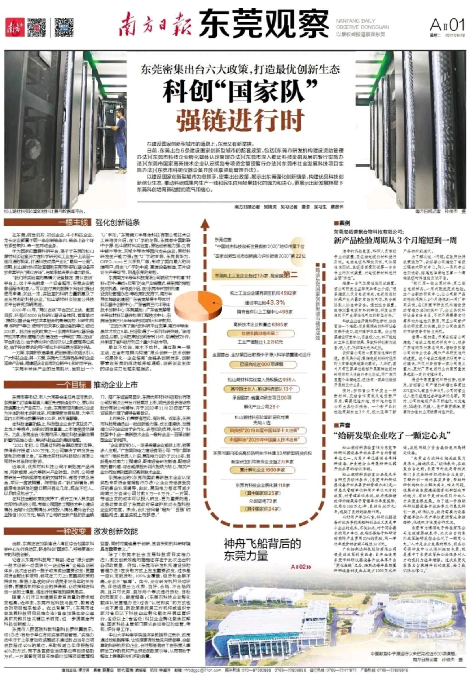 当前,东莞正在加紧建设大湾区综合性国家科学中心先行启动区,跻身科创“国家队”,呼唤更高水平的科技创新。