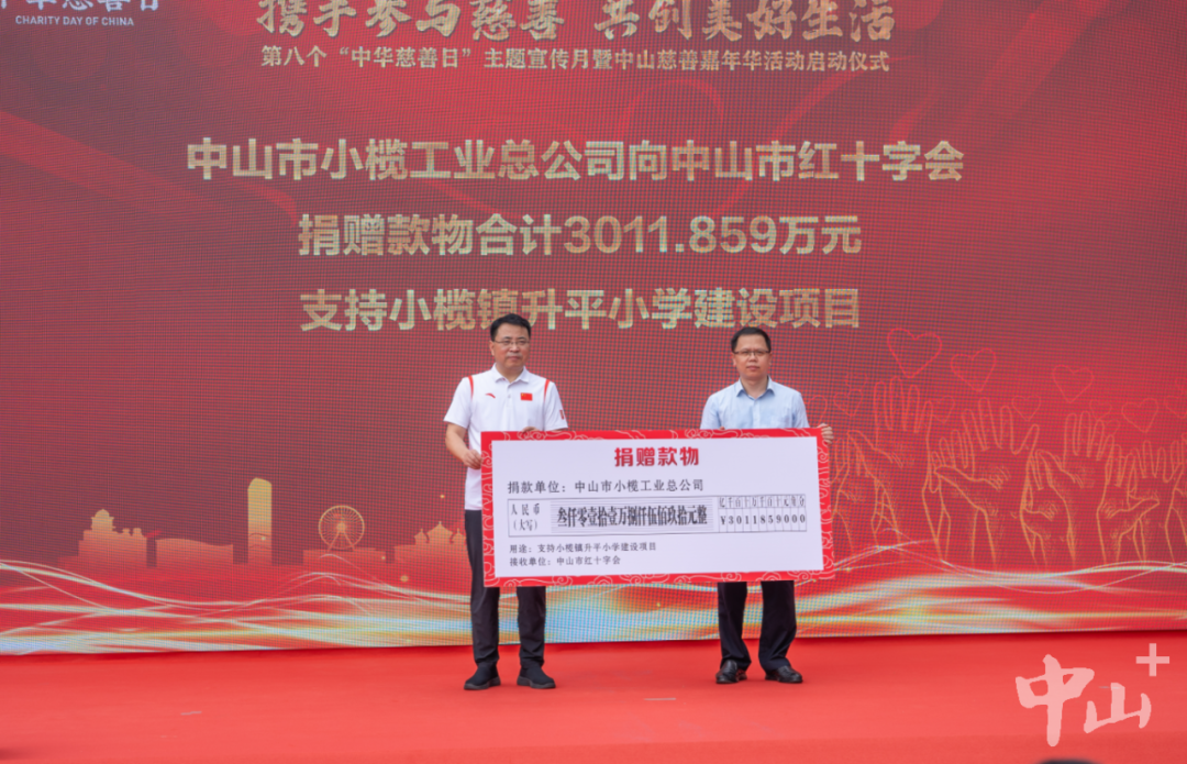 启动仪式上,举行了支票捐赠仪式,小榄镇工业总公司捐赠款物约3012万元,支持小榄镇升平小学建设项目;明阳智慧能源集团股份公司捐赠1000万元,支持火炬开发区助学项目。