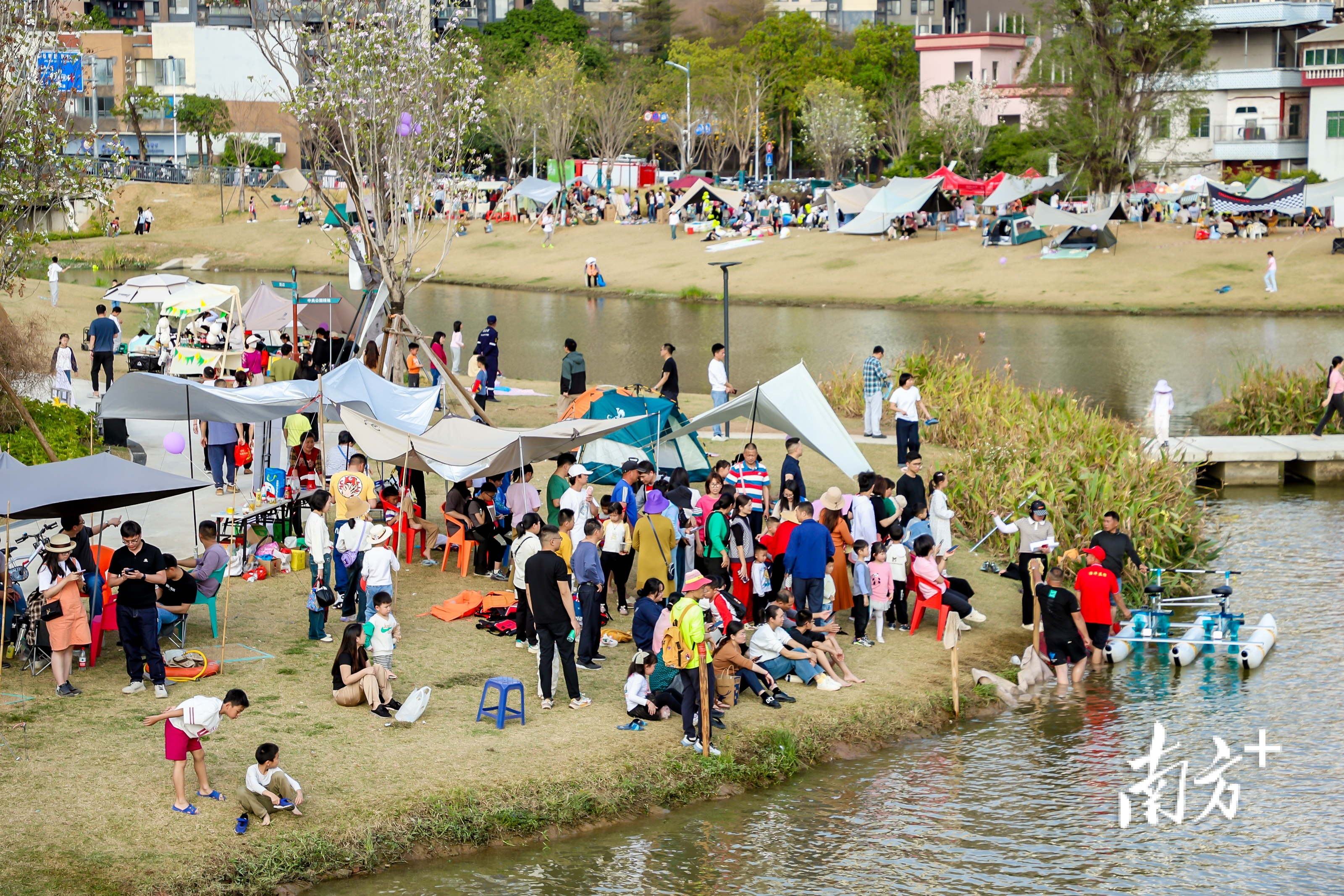 如今一到周末,陈村NCC新岸公园内,帐篷沿着河岸铺开,家长带着孩子在滨水绿道上骑行,清澈的河水倒映着一张张笑脸;云鹭湿地公园里,鹭鸟低掠水面激起涟漪,晨练的长者坐在长椅上,描绘出一幅“城在水中、人在画中”的治愈图景。
