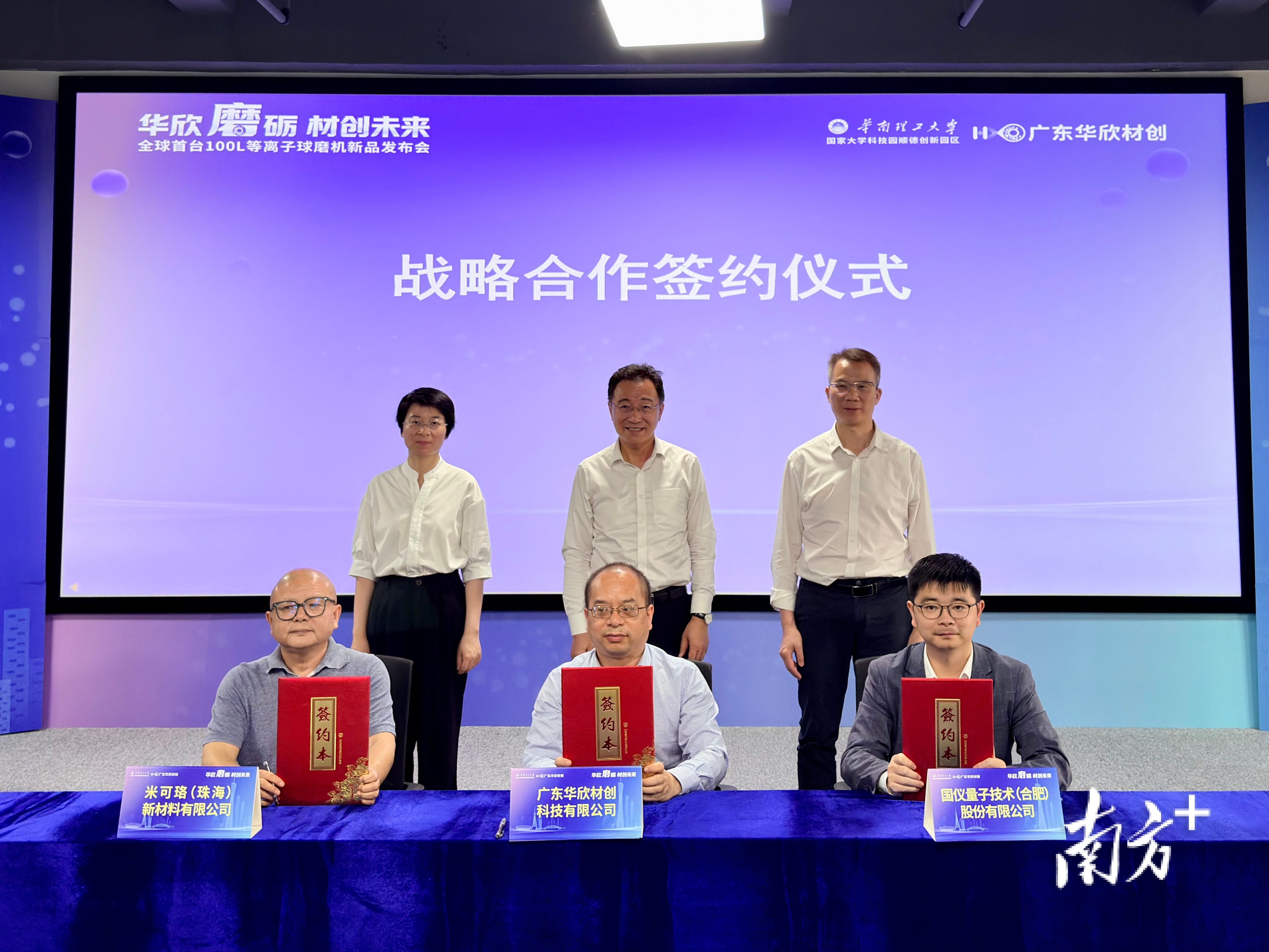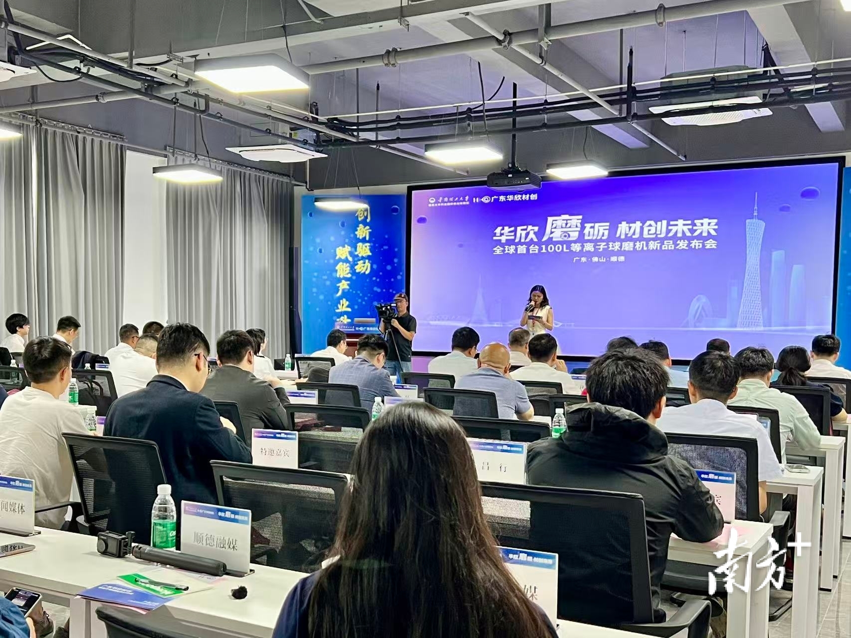 研磨效率提升近10倍,从实验室走向工业化大生产!4月15日,顺德陈村,在华南理工大学科技园顺德创新园,全球首款100L连续生产型等离子球磨机正式发布,由华欣材创自主研发。