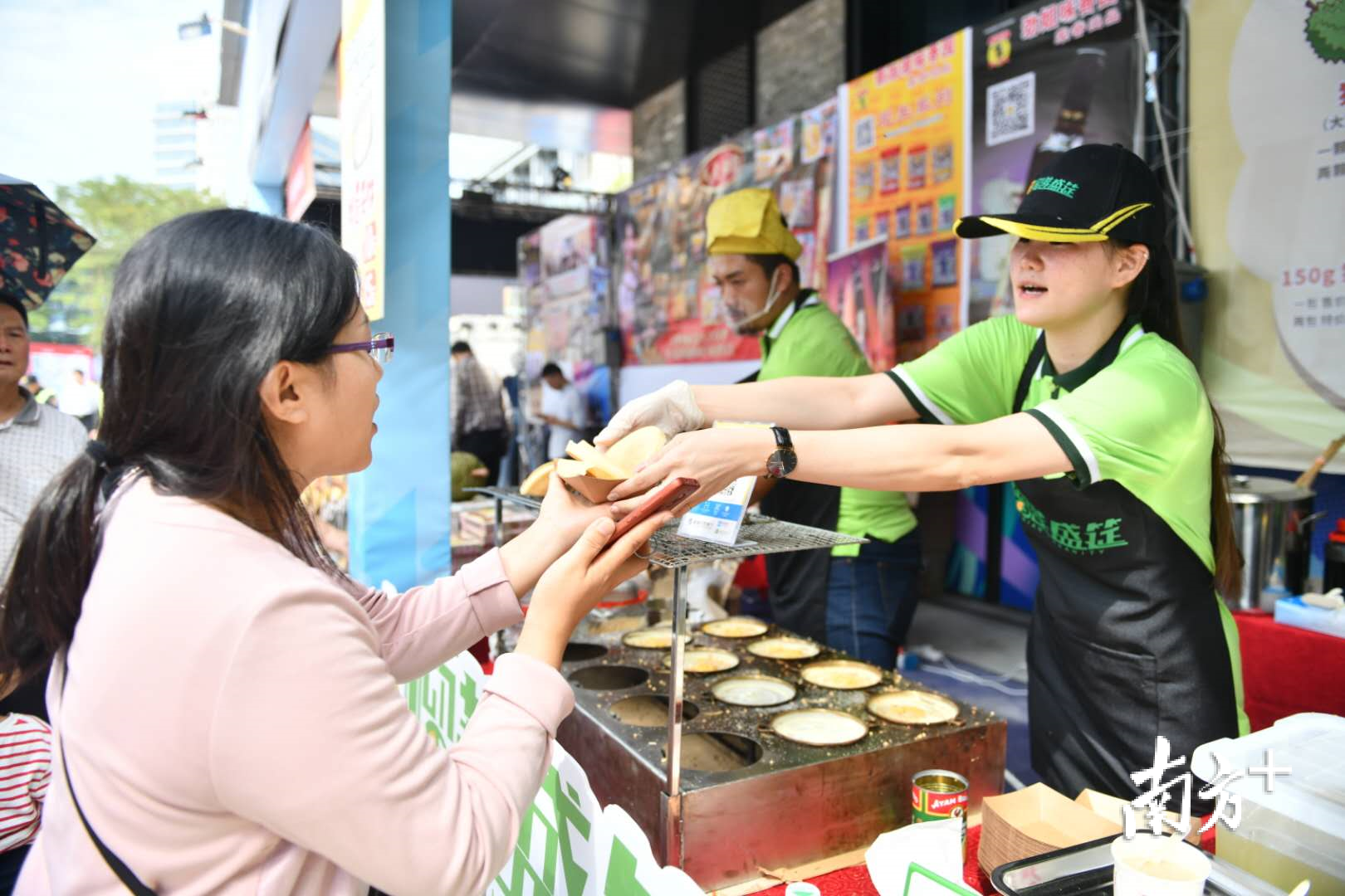 南方+记者还想提醒下,在此次美食展的寻味顺德展区上,您还可以品尝到猪肉婆私房菜、香云纱园林酒店等钻石名店提供的香煎牛仔骨、龙虾汤泡脆米饭、椰子炖双皮奶、大良双品爱、香煎银丝饼等过百款顺德小吃。