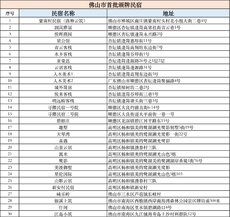 附获得首批“佛山民宿标识牌”民宿企业名单