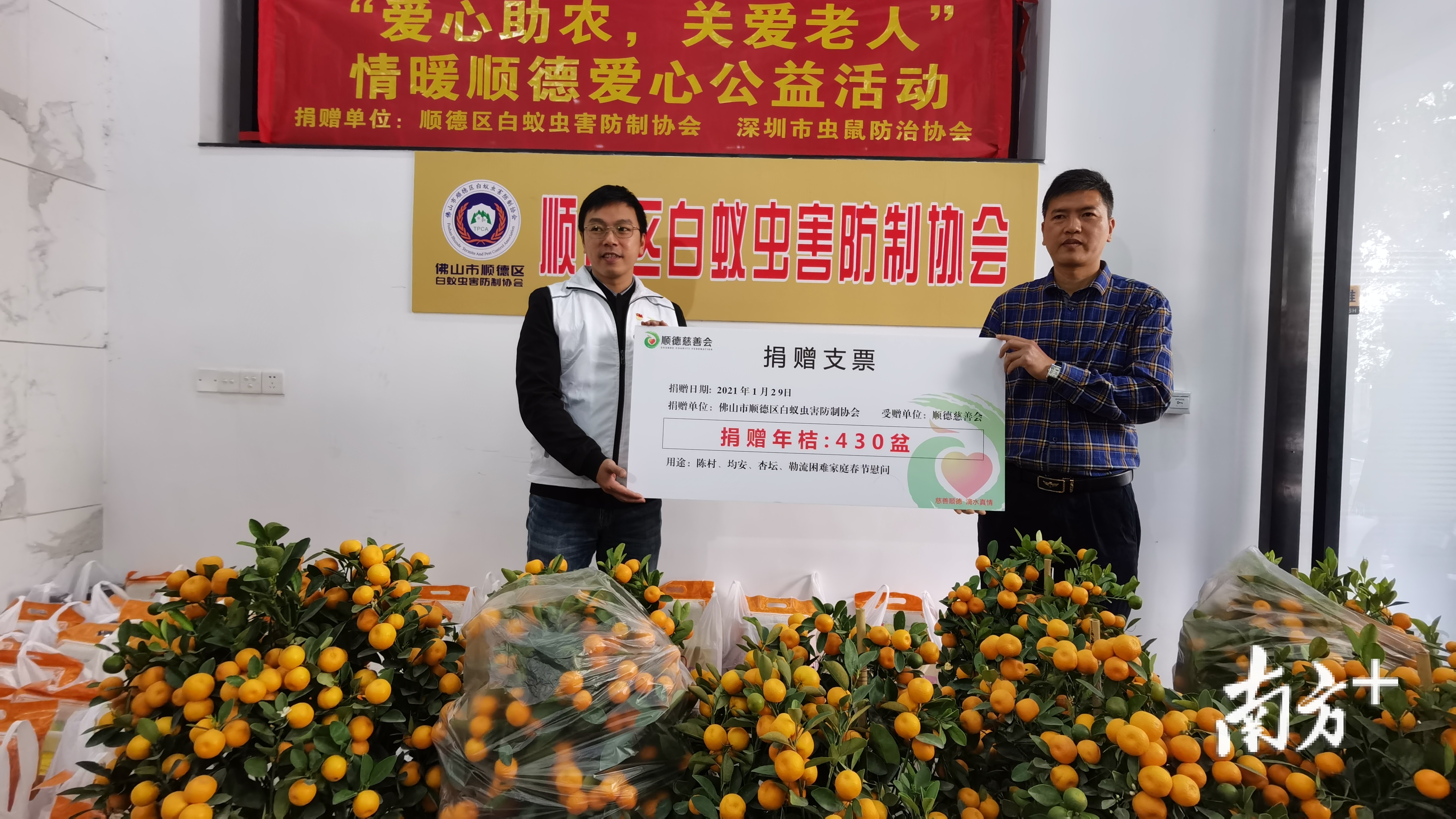 值得一提的是,佛山市顺德区白蚁虫害防制协会向顺德慈善会捐赠年桔430盆,将派发至陈村、均安、杏坛、勒流的困难家庭,为他们增添节日气息。在各级政府系列惠农助农措施的大力支持下,社会各界群策群力,积极连接慈善资源,用爱心支持顺德桔农,与桔农“同甘苦”。