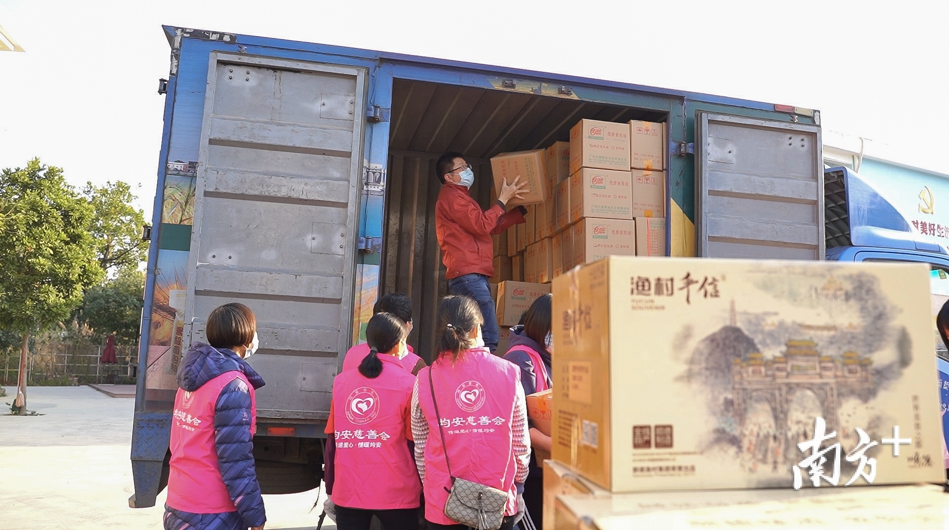 1月29日7:30,顺德慈善会2021年“情暖春节 爱心派送”慈善活动暖心发车,满载着2834份爱心礼包的货车从广东白燕粮油实业有限公司出发,将爱心传播到全区9个镇街的收货点,龙江慈善会综合体也开始对该镇241户的困难家庭进行爱心礼包派发。