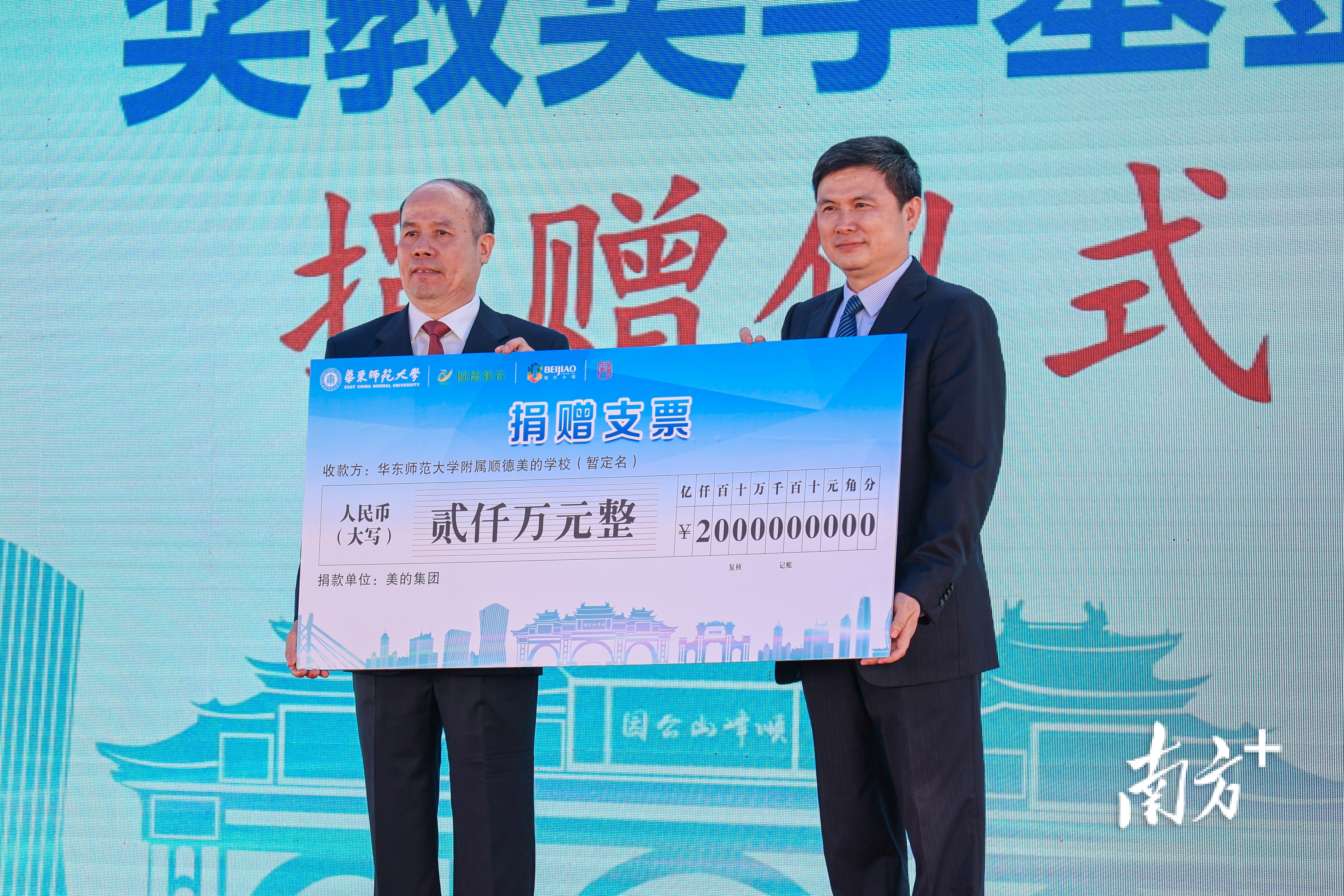 美的集团向华东师大附属顺德美的学校(暂定名)捐赠2000万元。北滘镇供图