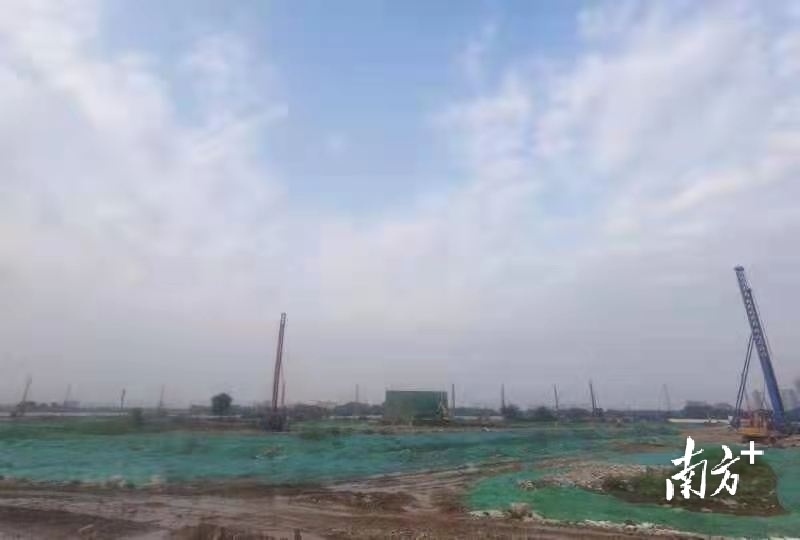 4月20日中午,佛山市顺德区北滘镇潭洲水道岸边,和祐国际医院的工地上不时传出打桩机的巨响,为降尘而专门喷出的水雾弥漫到工地四周。虽是阴雨天,人们也不由得被这建设的热浪触动。