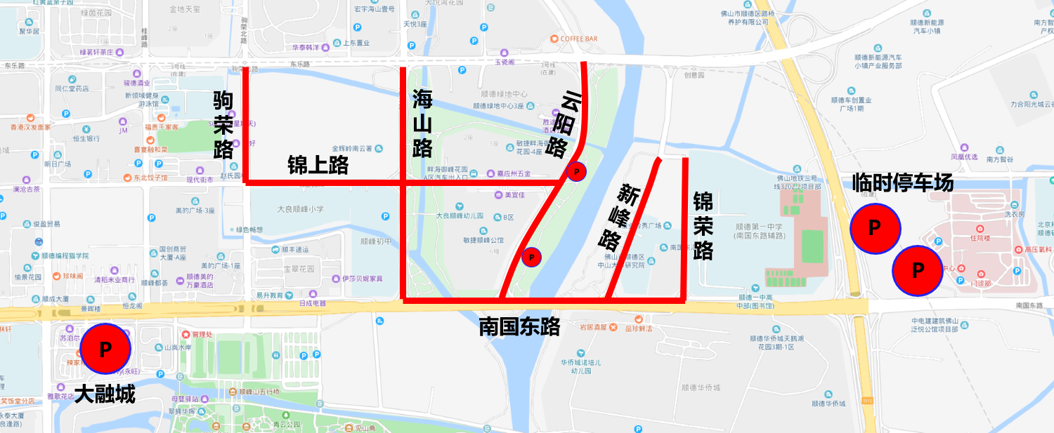 (2)当交警部门实施临时交通管制时,将封闭南国路桂峰路、碧溪路两处主线出口及顺峰山公园入口,开放大融城、同江医院西侧临时停车场及驹荣路、锦上路、海山路、云阳路、南国东路、新峰路、锦荣路等部分道路两侧供车辆临时停放,共约提供停车泊位约4160个。